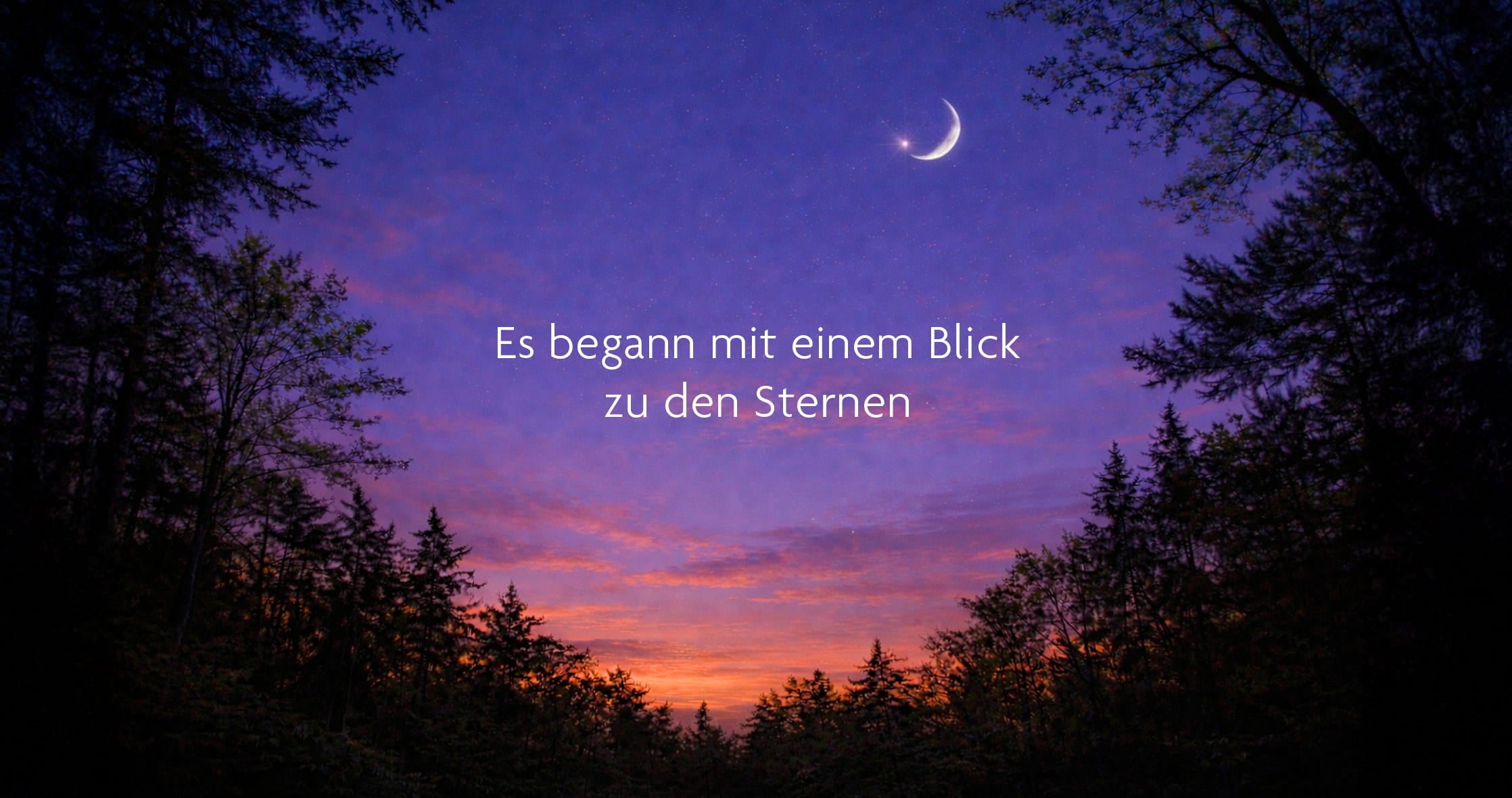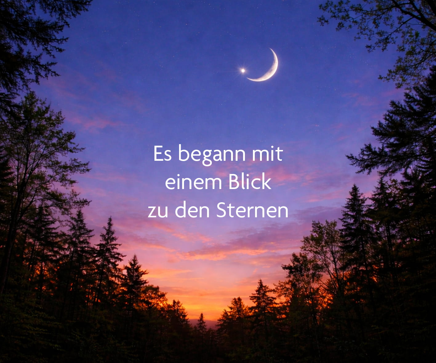 In die Natur einzutauchen tut mir in solchen Momenten besonders gut. Mit jedem Schritt auf dem weichen Waldboden wurde mein Atem ruhiger, meine Gedanken klarer. Als ich eine kleine Lichtung erreichte, blieb ich stehen und blickte hinauf in den Himmel. Am blau-rot gefärbtem Himmel wurden die ersten Sterne und Planeten sichtbar. Ganz nahe dem Mond leuchtete die auch als Abendstern bekannte Venus heller als alle anderen Sterne. Es war ein faszinierender Anblick. In diesem Augenblick fühlte ich mich seltsam verbunden – mit dem Himmel, mit dem Universum, mit etwas Größerem.